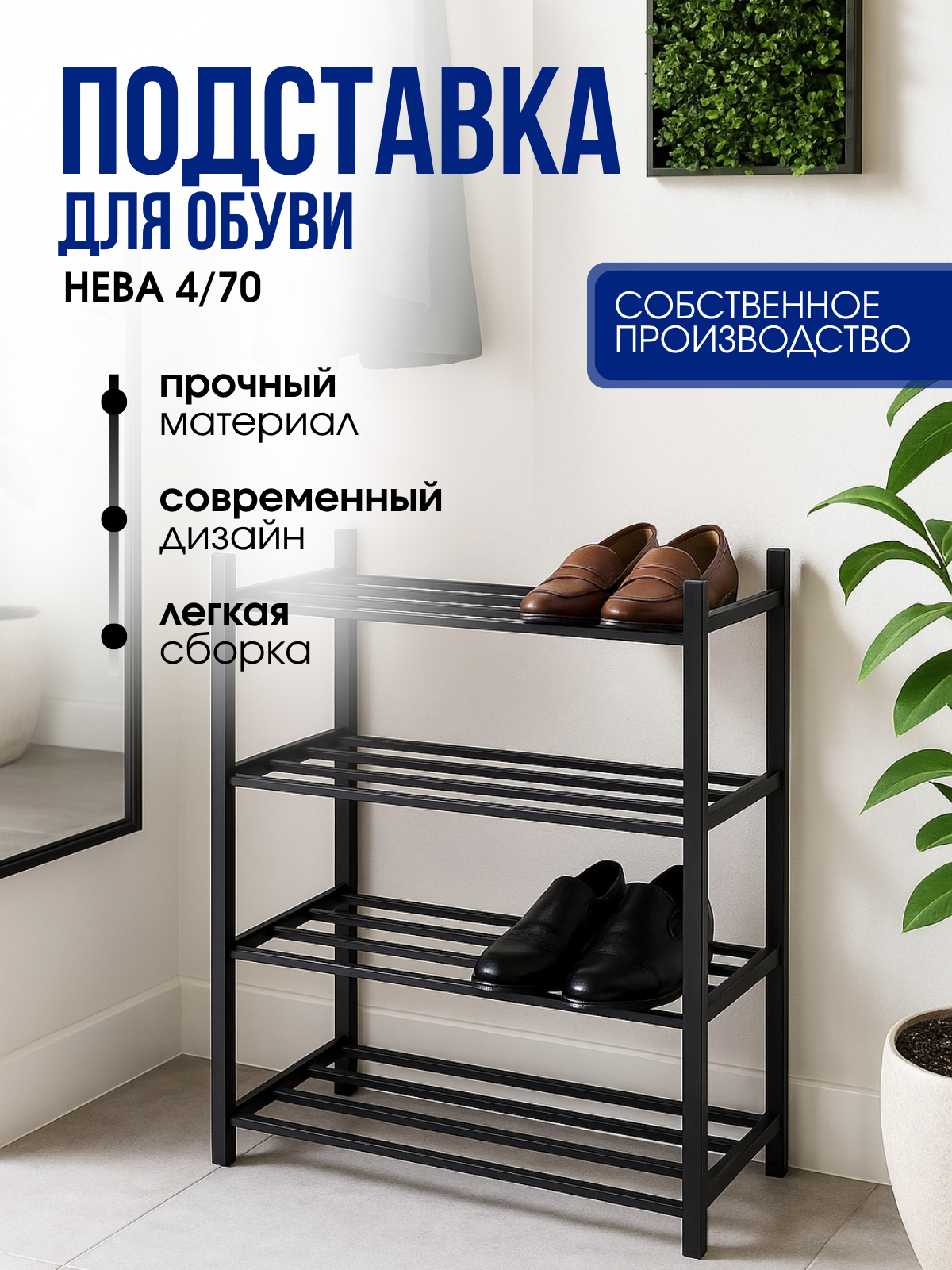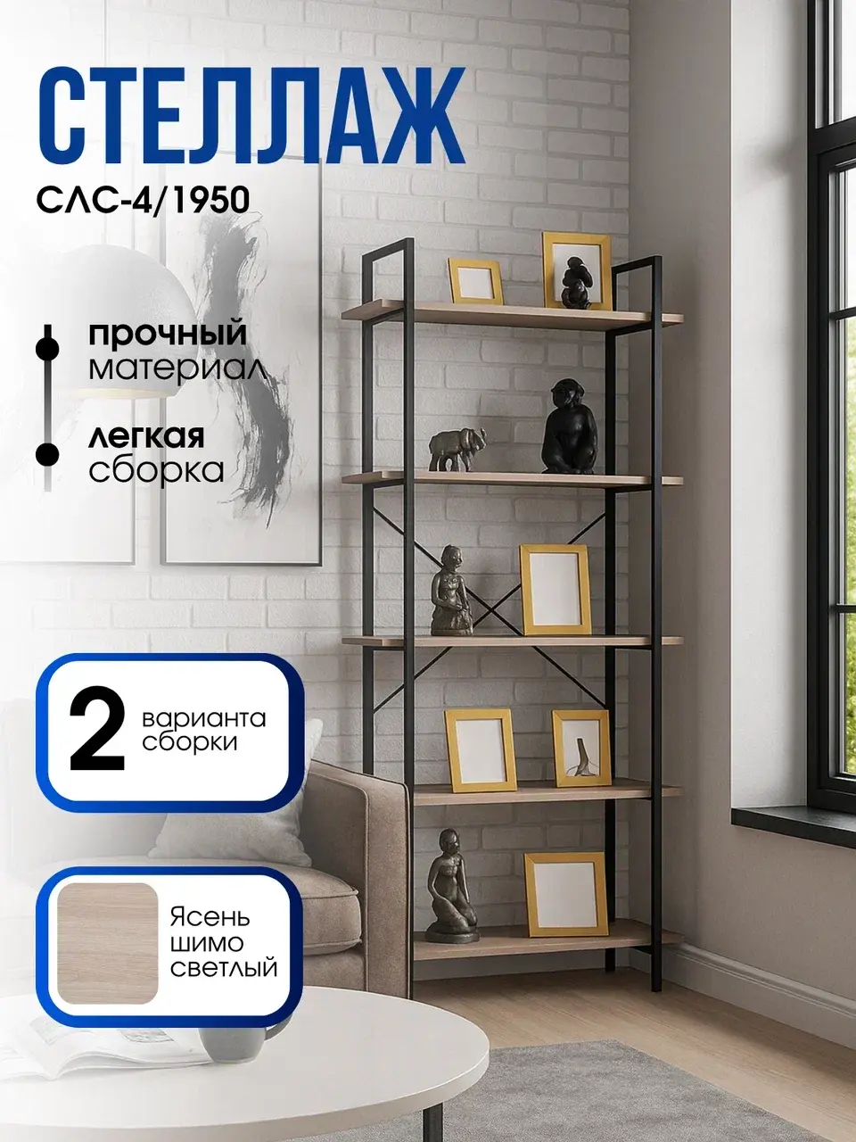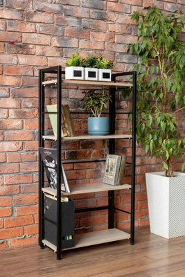 Стеллаж предназначен для открытого хранения книг, статуэток, цветов и других предметов домашней утвари.Преимущества стеллажа: - устойчивость - крепление к стене и одновременно упор на пол - предотвратит возможность завала стеллажа; - легкая сборка; - оригинальный дизайн стеллажа. Количество полок - 4 Распределенная максимальная нагрузка на стеллаж - до 80кг