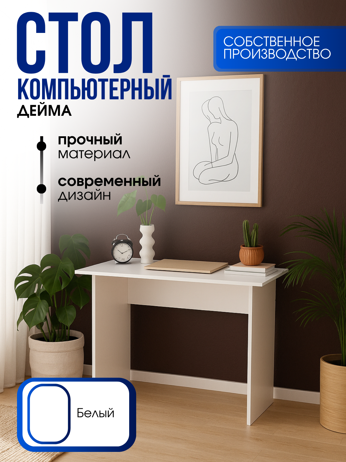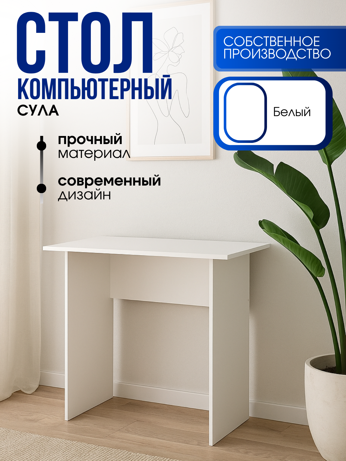 Стол компьютерный 900х450х750мм выполнен из ЛДСП. Благодаря своим пропорциям легко впишется даже в самое маленькое помещение. Широкая столешница позволяет разместить на рабочей поверхности ноутбук или монитор компьютера. Модель изготовлена из качественных и износостойких материалов.