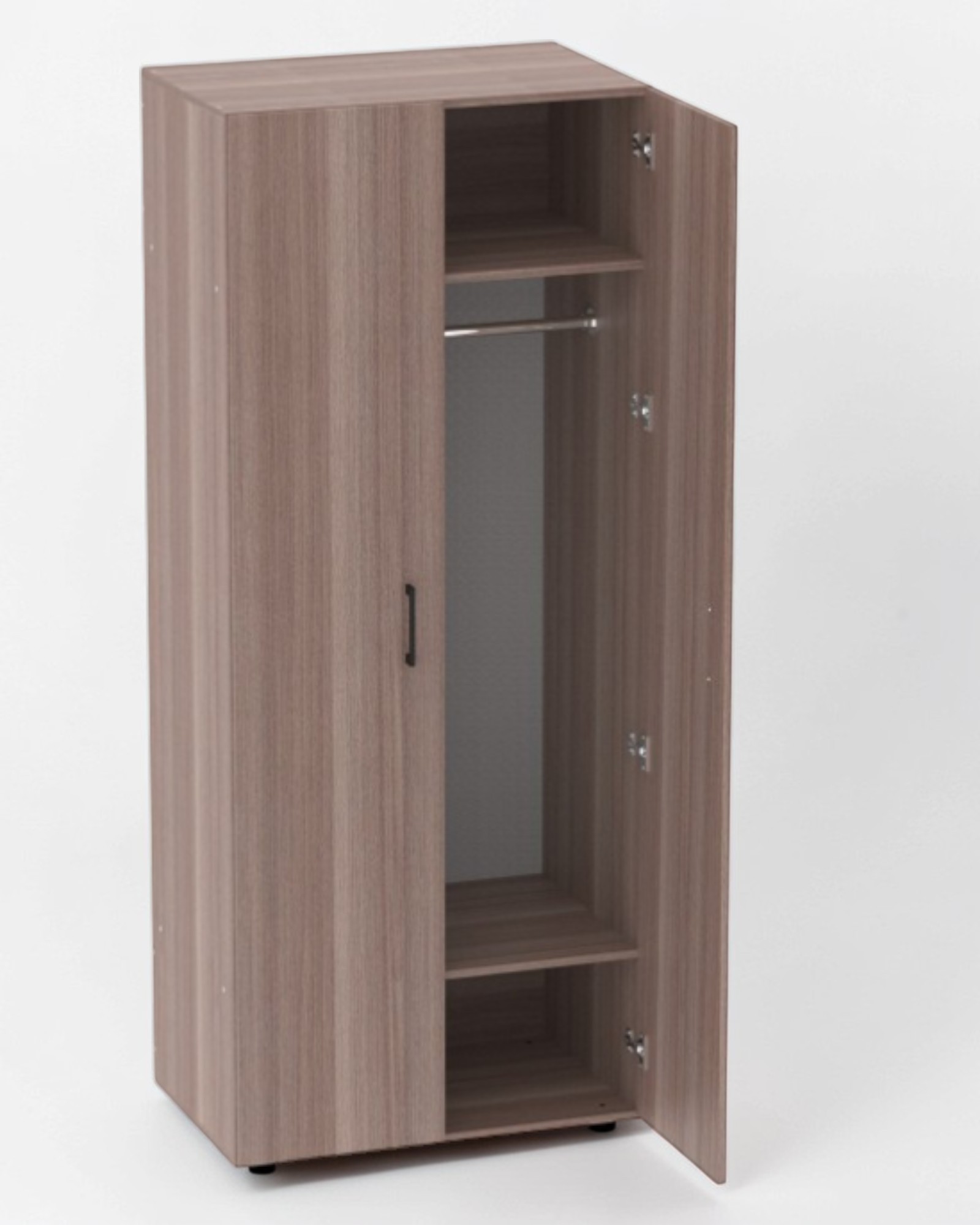 Шкаф для одежды платяной двустворчатый с 2-мя полками и перекладиной для вешалок, изготовлена из ЛДСП 16 мм, двери покрыты кромкой 2 мм, остальные части - кромка 0,4 мм.