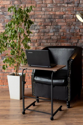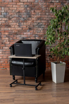 Стол компьютерный 610х380х670мм.Мобильный столик для ноутбука – универсальная и практичная вещь, которая позволяет создать дома полноценное рабочее место. Изготовлен из стальной трубы, столешница из ЛДСП. Может использоваться как для ноутбука, так и для бытовых целей. Телескопическая конструкция позволяет регулировать столешницу по высоте. Этот столик предназначен для удобной работы с ноутбуком в различных местах. Он оснащен колесами, что делает его легким в перемещении.