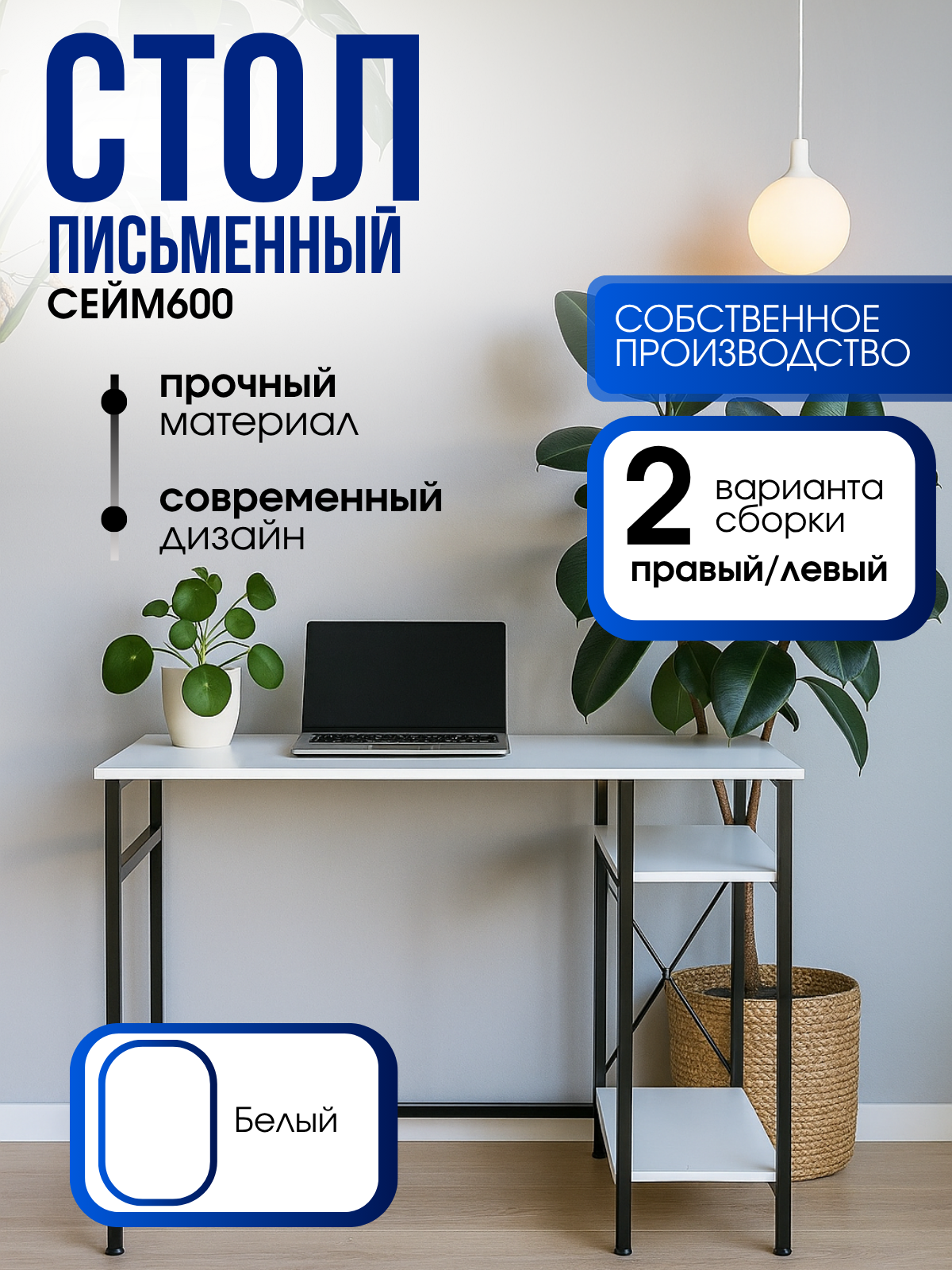Доступны 2 варианта сборки стола (правый или левый), что позволяет адаптировать его под различные интерьерные решения. Цветовая гамма и материалы делают стол современным и элегантным, что подходит для как для офисов, так и для домашних условий. Прочные материалы обеспечивают надежность и долговечность конструкции. Стол станет отличным дополнением любого пространства, предлагая не только стильный вид, но и практическое применение.