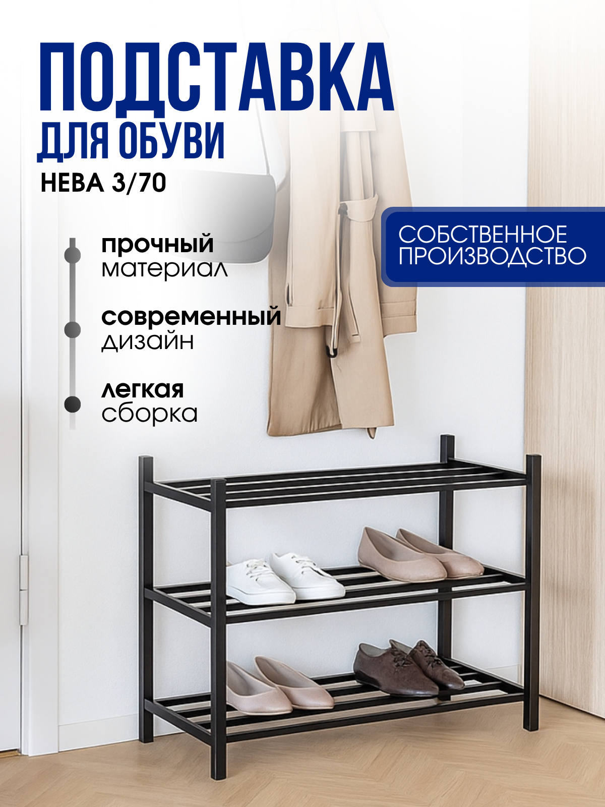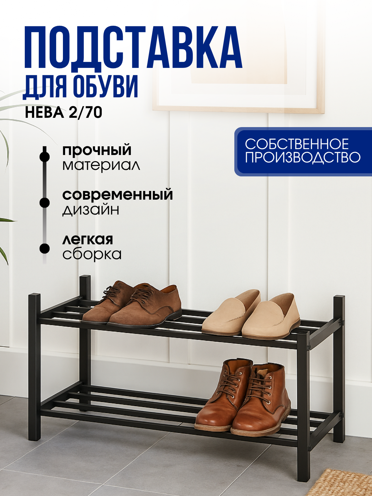 Каркас стеллажей изготовлен из стальной профильной трубы 20х20мм, представляет собой две вертикальные стойки, выполняющие функцию опор. Сзади перекрещивающиеся стяжки из трубы Ф10мм для усиления каркаса. Покрытие порошковое полимерное. Цвет стоек - черный. Полки из ЛДСП толщиной 16мм. Размер полок 904*295 мм. Расстояние между полками 430мм. Нагрузка на полку - до 20кг. В комплект стеллажа входят регулируемые опоры, предназначенные для организации ровного горизонтального расположения. Два варианта сборки делают стеллаж универсальным и подходящим для разных типов интерьеров и задач. Конструкция способна выдерживать значительные нагрузки, что позволяет безопасно хранить крупные и тяжелые предметы. Стеллаж будет отличным решением для организации хранения и создания функционального пространства в вашем доме или офисе.