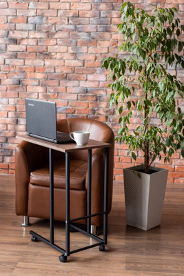 Стол компьютерный 600х380х755 мм.Мобильный столик для ноутбука – универсальная и практичная вещь, которая позволяет создать дома полноценное рабочее место. Изготовлен из стальной трубы, столешница из ЛДСП. Может использоваться как для ноутбука, так и для бытовых целей. Этот столик предназначен для удобной работы с ноутбуком в различных местах. Он оснащен колесами, что делает его легким в перемещении.
