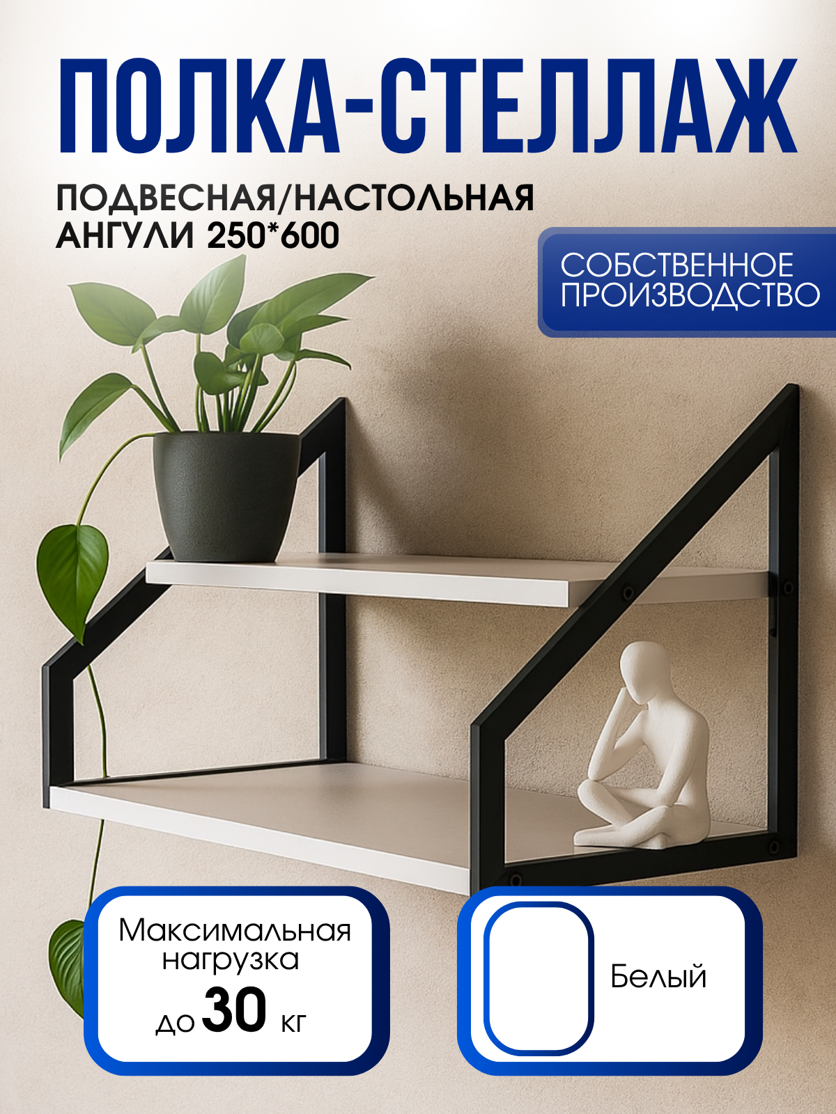 Цвет черный муар придает стеллажу элегантный и стильный вид, который легко вписывается в любой интерьер. Стеллаж является идеальным решением для организации хранения небольших предметов, книг, декоративных элементов и других аксессуаров как в домашнем, так и в офисном пространстве.Нагрузка на полку до 5кг, общая распределенная нагрузка на изделие до 10кг.